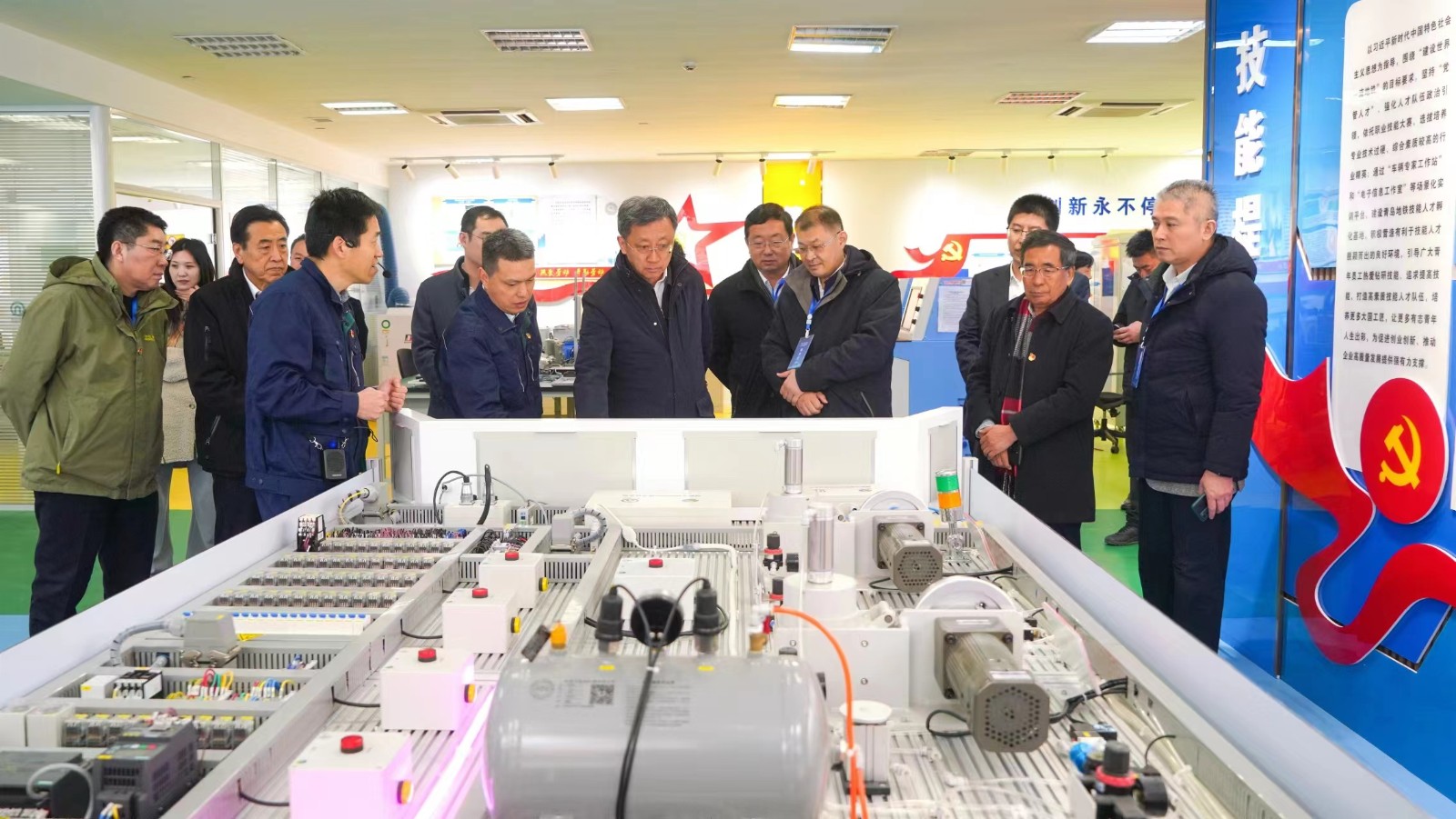 活動中,與會者參觀了位于原國棉六廠老廠區(qū)的TOD展廳,聽取了我市TOD發(fā)展規(guī)劃介紹,了解到這座曾經(jīng)孕育了全國聞名的“郝建秀工作法”的老廠區(qū)即將煥發(fā)新生機(jī);參觀了在建的青島地鐵5號線環(huán)灣大道站施工現(xiàn)場,了解他們以班組建設(shè)引領(lǐng)提升生產(chǎn)效率方面的成績;參觀了青島地鐵線網(wǎng)運(yùn)營管理與指揮中心,實地感受中心在實現(xiàn)城市線網(wǎng)運(yùn)營指揮一體化、資源集約化、信息共享、應(yīng)急處置、線網(wǎng)協(xié)調(diào)統(tǒng)一運(yùn)作上發(fā)揮的重要作用;參觀了尹星職工創(chuàng)新工作室,聽取全國勞動模范尹星率領(lǐng)技術(shù)團(tuán)隊突破技術(shù)壁壘,填補(bǔ)國內(nèi)空白等方面的先進(jìn)事跡。