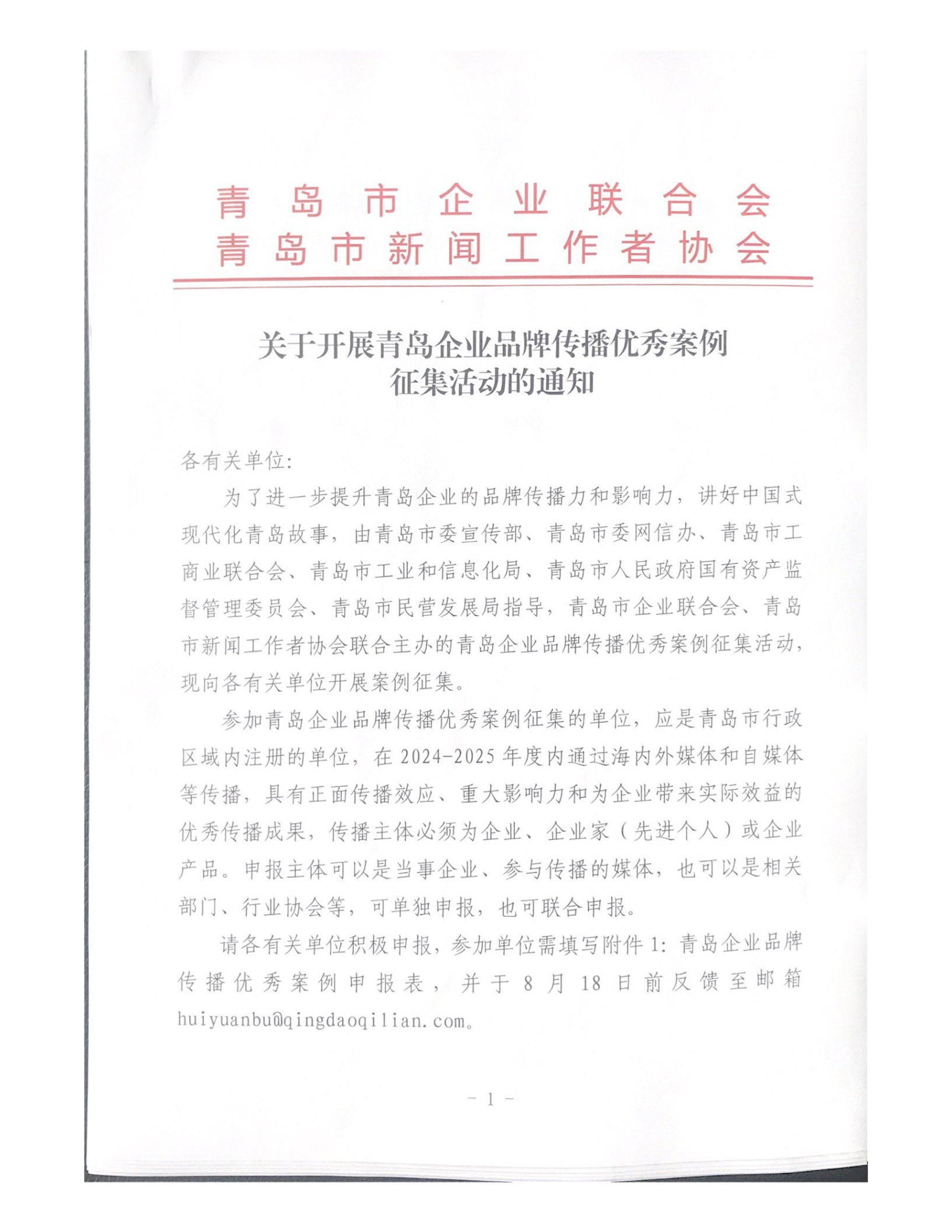 為深度挖掘我市“品牌之都”背后的精彩故事,廣泛傳播青島企業(yè)在品牌塑造與傳播領(lǐng)域的卓越實(shí)踐與創(chuàng)新智慧,助力青島品牌建設(shè)再攀高峰,青島市企業(yè)聯(lián)合會(huì)、青島市新聞工作者協(xié)會(huì)日前聯(lián)合向全市發(fā)出通知,啟動(dòng)“青島企業(yè)品牌傳播優(yōu)秀案例”征集活動(dòng),誠(chéng)邀全市相關(guān)單位踴躍參與,分享企業(yè)品牌傳播的精彩故事與豐碩成果!
